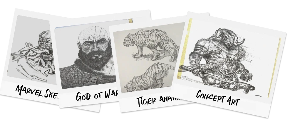 Over time, I started drawing game characters (Prince of Persia, Ezio Auditore from Assassins creed, Splatter house, Kratos from God of War), cartoon figures, cars, Battleships—whatever caught my curiosity. This habit pulled me into concept art and sketching.